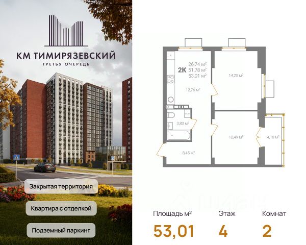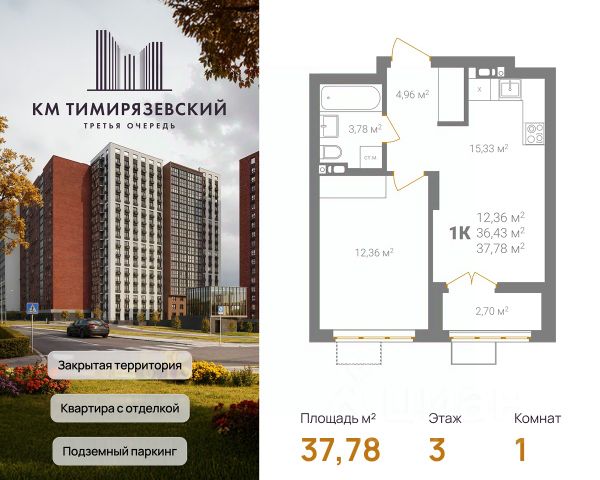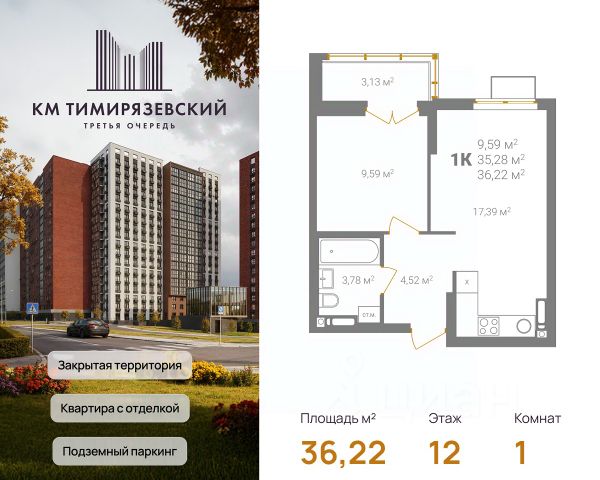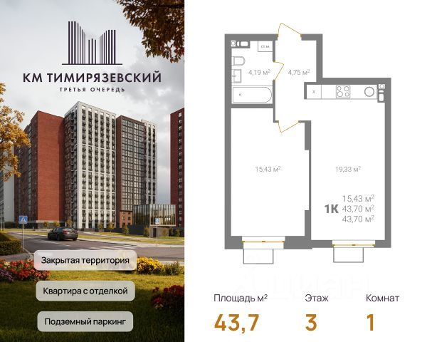 Продается квартира в 3 очереди строительства жилого комплекса КМ Тимирязевский. КМ Тимирязевский — современный жилой комплекс комфорт-класса в центре Нижнего Новгорода. Рядом улица Белинского, площадь Лядова, деловые кварталы и любимые места города. До Кремля — 10 минут, до Московского вокзала — 15. Квартира с отделкой "под ключ" На кухне установлен кухонный гарнитур с варочной поверхностью и духовым шкафом; В ванной — акриловая ванна, тропический и гигиенический души, зеркало, тумба с раковиной, стены и пол выложены крупноформатной плиткой; В каждой квартире предусмотрен шкаф в прихожей или система хранения в гардеробной. В каждой комнате поклеены обои, уложен ламинат 32 класса и белоснежный натяжной потолок. Преимущества комплекса: Фасады из керамического кирпича — надёжно и стильно Закрытый двор без машин — безопасность и уют Благоустройство продуманная территория для детей и взрослых Подземный паркинг — два уровня, лифт в жилую часть Коммерческие помещения на 1 этаже — магазины и сервисы рядом Все квартиры с готовой отделкой До 4 квартир в обособленном холле. КМ Тимирязевский. 3 очередь — ваш новый уровень комфорта. В домах третьей очереди действует программа от гк Каркас Монолит "КМ Капитал" — это стратегия, позволяющая использовать потенциал роста стоимости недвижимости максимально прозрачно и эффективно. Цена на квартиру формируется по заранее утверждённому графику, который не зависит от колебаний рынка. Это часть открытой ценовой политики группы компаний Каркас Монолит — вы точно знаете, когда и на сколько изменится стоимость, и можете планировать покупку как профессиональный инвестор. Вы можете видеть стоимость квартиры в конкретный период времени и заранее определить лучший момент для покупки или дальнейших инвестиционных решений.