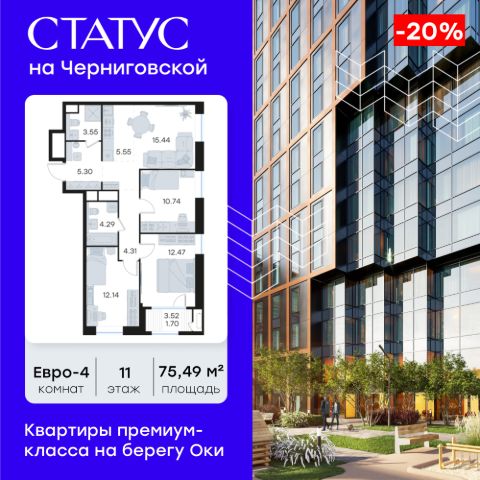 Продается 2-комн. квартира на 4-м этаже в строящемся проекте премиум-класса СТАТУС на Черниговской. Общая площадь лота составляет 60,14 кв. м, из которых 24,92 кв. м отведено под жилую и 20,41 кв. м под кухонную зону. Номер квартиры - 248. Преимущества квартиры: - Квартиры премиум-класса у воды - Первая береговая линия. Изумительные виды на Стрелку и слияние Оки и Волги - Панорамные окна во всех квартирах - 11 минут до Кремля, 5 мин до Нижневолжской набережной - Дизайнерские лобби со вторым светом - Двухуровневый отапливаемый паркинг на 350 м\м - Приватный благоустроенный двор с видеонаблюдением только для резидентов - Современные детские площадки, зоны спокойного отдыха, зона для занятия спортом, зеленые кабинеты на свежем воздухе - Детские сады и школы в шаговой доступности - Собственный комьюнити-центр с коворкингом, детской комнатой, залом для фитнеса и кофе-поинтом. - Умный Дом и Умная Квартира - Ресторанный кластер в ЖК - Келлеры для хранения - Коммерческие помещения на 1 этаже СТАТУС на Черниговской - новый жилой комплекс премиум-класса в историческом центре Нижнего Новгорода, в котором объединились лаконичность архитектурной мысли, технологичность решений и внимание к деталям, присущее всем проектам компании GloraX. Проект для рационалистов, придающих большое внимание собственному комфорту и современным технологиям СТАТУС на Черниговской - это высшая форма Нижнего Новгорода. Инновационные решения и сервисы, закрытые дворы в стилобате с уютными детскими площадками, гастро-кластер, комьюнити-центр и дизайнерские лобби здесь все создано для максимального комфорта каждого жителя. Приватное пространство внутреннего двора с тактильными тропами, с собственным садами, камерными зелеными кабинетами для работы и отдыха, детскими площадками для разных возрастов и местами для занятия спортом создает неповторимую атмосферу безмятежности и спокойствия. СТАТУС на Черниговской возвращает набережной и пространству вокруг исторический статус, привлекая тех, кто готов развиваться вместе с городом. Дорога до любимейшего променада нижегородцев Нижне-Волжской набережной займет всего 10 минут пешком, до ближайшей станции метро Горьковская 10 минут на автомобиле. Попасть на главную площадь города, Чкаловскую лестницу и в Кремль на машине за 11 мин? Легко! И всего 48 минут займет путь до международного аэропорта имени Чкалова, что станет неоспоримым преимуществом для тех, кто часто летает в командировки. В проекте СТАТУС на Черниговской доступен широкий выбор планировочных решений от небольших уютных студий площадью 28,3 м2 до двухуровневых квартир с террасами площадью до 188,7 м2 и потрясающими видами на Нижегородские закаты. Все квартиры сдаются в черновой отделке, что позволяет нашим резидентам воплотить в своем доме любую дизайнерскую идею. Цена указана при 100% оплате или стандартной ипотеке. Узнайте подробности в Отделе продаж.