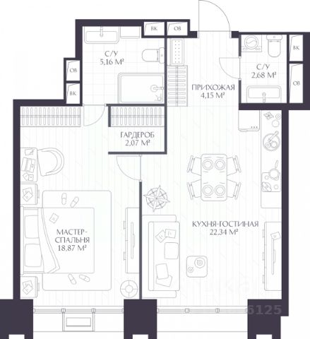 Двухкомнатная квартира с европланировкой в ЖК "VEREN PLACE Одесская" на 2 этаже. Квартира без отделки, новый собственник может сделать ремонт по своему проекту. Общая площадь: 55.24 кв.м., жилая: 36.21 кв.м., общая площадь гостиной-столовой с кухонной зоной: 22.34 кв.м. Европейская планировка, в просторной кухне-гостиной удобно как готовить, так и отдыхать. Комнаты изолированные, все окна выходят на одну сторону. В квартире один совмещенный и один раздельный санузел. Высота потолков 2.93 м. Квартира находится в корпусе 1. Дом монолитный, одноподъездный, высотой 17 этажей. На этаже 8 квартир. В подъезде 1 пассажирский и 1 грузовой лифт. Окончание строительства - 3 квартал 2026 года. Оформление сделки по договору долевого участия. Вид на город (рассвет), мастер-спальня, гардеробная, 2 санузла. VEREN PLACE ОДЕССКАЯ - это 17-этажный клубный дом бизнес-класса, который разместится на высоком берегу Оки на исторической территории в Старом Нижнем Новгороде. Комплекс "VEREN PLACE ОДЕССКАЯ" продолжает линейку проектов бизнес-класса от VEREN GROUP. Жилой комплекс имеет удобное расположение — в локации с насыщенной социальной и торговой инфраструктурой. Рядом находятся детский сад 135, корпус ННГУ, ТЦ "Небо", а в 20 минутах ходьбы — центральная прогулочная улица города Большая Покровская. Архитектурный проект нового жилого комплекса был разработан именитым бюро "Остоженка". Отделка фасадов выполнена из кирпича и кортеновой стали, что в сочетании с панорамным остеклением, придает ему выразительный облик. Первый этаж запроектирован на высоте 13 метров. Таким образом, просторная входная группа имеет высоту потолков 10 метров, что делает ее интерьер уникальным. Благодаря расположению и продуманной архитектуре из каждой квартиры как на верхних, так и на нижних уровнях будут открываться живописные виды. Просторные стильные холлы в высотке будут выполнены по индивидуальному проекту. В доме предусмотрено два лифта — пассажирский с панорамным остеклением и грузовой. Будущие жильцы смогут спуститься, в том числе на подземную парковку, рассчитанную на 94 машино-места, также предусмотрен гостевой паркинг. В "VEREN PLACE ОДЕССКАЯ" будут системы контроля доступа и видеонаблюдения. Предполагается собственная огороженная территория, благоустроенная по авторскому дизайн-проекту с учетом последних тенденций ландшафтной архитектуры. Здесь разместятся зоны отдыха, воркаут зона и детская площадка. В доме предусмотрено 114 квартир различного формата площадью от 50 до 156 кв. м (от четырех до восьми квартир на каждом этаже). Во всех квартирах панорамное остекление, а на верхних этажах запроектированы террасы с видом на закат и слияние Оки и Волги. Отделка квартир в проекте не предусмотрена. #ZmC1A6