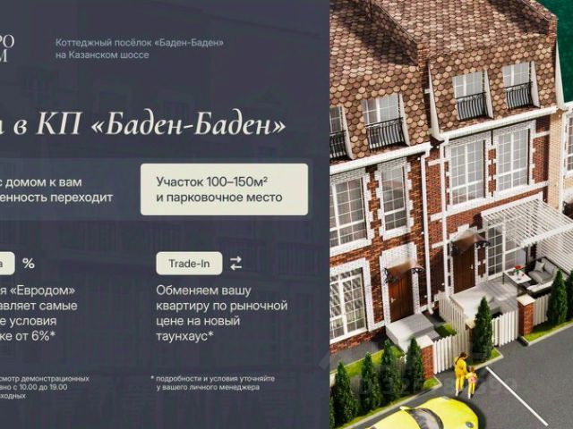 Продается таунхаус в коттеджном поселке комфорт-класса Баден-Баден, располагающийся в престижном районе города, в 230 метрах от остановки общественного транспорта ул. Казанское шоссе.