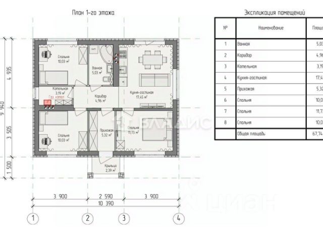 • ✅ Минимальная площадь: 55,2 м² (площадь дома), 3,7 сот. (площадь участка)