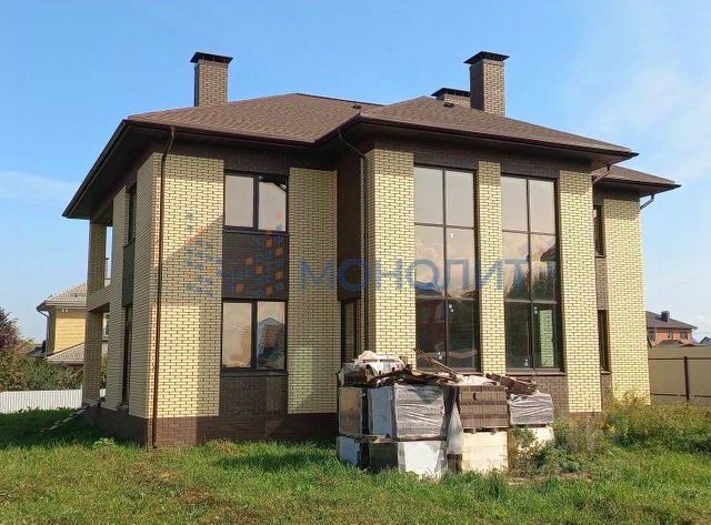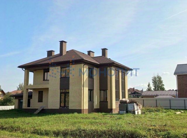 Предлагается к продаже двухэтажный дом 338.1 кв. м, (подходит под сельскую ипотеку) построенный на участке ровной прямоугольной формы. Очень удачное месторасположение. 18 соток земли (Земли населенных пунктов. ИЖС) . Расположенный по адресу: Нижегородская обл.,Кстовский муниципальный район, дер.Малая Ельня, ул.Звездная д.61 (15 км от Нижнего Новгорода). Дом строился по проекту. Планировка дома вся продумана до мелочей. В доме шесть комнат (квадратной формы), три санузла с душевыми, три гардеробные комнаты, огромная кухня с выходом на террасу и в просторную гостевую комнату (она же каминный зал). Есть большой балкон на втором этаже с прекрасным видом. Своя отдельная котельная в которую заведен газ, подключен газовый котел и счетчик. Стены дома выполнены из керамического кирпича, толщина стен 50см. Сделана очень хорошая вентиляционная система. Фундамент свайно-ленточный. Перекрытия ж/б. Стоят пластиковые двухкамерные окна фирмы REHAU. Кровля, гибкая черепица. В границах участка выведен и установлен переливной септик. Электрический столб на границе участка, тех условия получены (15кВт). Два гаража, один из которых является частью дома, другой расположен на противоположенном углу участка. Асфальтированная дорога до дома. Соседи по участкам все очень хорошие люди. Развитая инфраструктура. Один взрослый собственник, без долгов и обременений. Звоните, всю дополнительную информацию расскажу по телефону или при показе дома. ВАЖНО!!! Цена только за дом!!! Большой отдельностоящий гараж в подарок!!! Помощь в оформлении ипотеки на выгодных условиях!!! Обеспечение комфортной и безопасной сделки, юридическое сопровождение. Деятельность агентства застрахована. Номер объекта: #1/1630544/11523