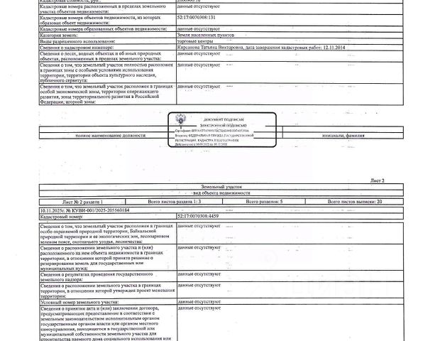 Объект размещен на ЭТП SALE. ZAKAZRF. RU Номер извещения: 21000032000000000615 Форма реализации: Аукцион. Реализация имущества должников Ссылка на объект: https://sale. zakazrf. ru/NotificationEXLot/id/80827 Дата начала приема заявок: 06. 03. 2026 17:30:00 (+03:00) Дата окончания приема заявок: 09. 04. 2026 23:59:00 (+03:00) Описание лота от организатора: Повторные торги. 1/4 доля в праве общей долевой собственности на земельный участок площадью 1132 +/- 12 кв. м, кадастровый (или условный) номер 52:17:0070308:4459, категория земель - земли населенных пунктов, вид разрешенного использования - торговые центры. Местоположение: Нижегородская обл. , Балахнинский р-н, рп. Большое Козино, ул. Пионерская, д. 3-а, земельный участок 2