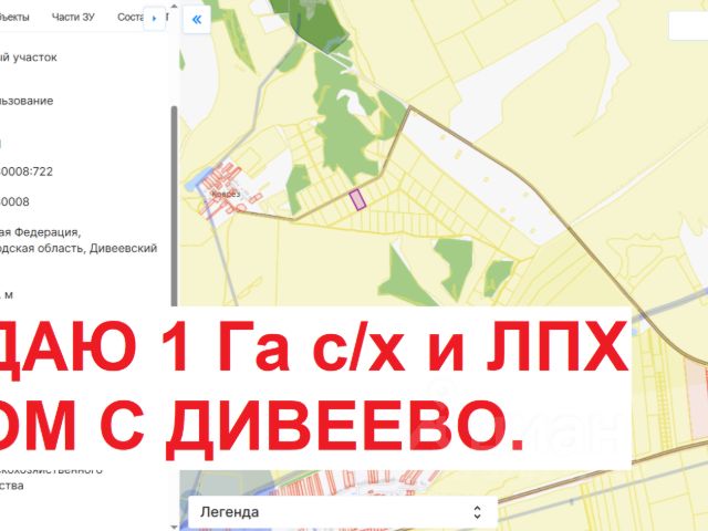 Купить земельный участок в Дивеево Купить землю в Дивеево ЭКСКЛЮЗИВ - 1 Га. ( 100 соток.) СВЕТ - подключен! В продаже участок под БИЗНЕС и ЛПХ, с/х деятельности. Покупка этого участка - выгодные инвестиции. Потому что участок рядом с Дивеево. + Можно купить удаленно. Есть видео обзор - звоните! + Для Вас удобное и безопасное оформление ДКП, помощь и сопровождение на всех этапах, безопасная форма расчетов. + Участок юридически чистый, 1 собственник. Добавьте в избранное - чтобы быть в курсе о спецпредложениях. По всем вопросам - ЗВОНИТЕ. Поисковые запросы - Купить земельный участок в Дивеево Купить землю в Дивеево купить участок в Дивеево Купить Участок ИЖС в дивеево