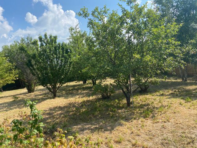 дом построен 2022 году бревно 100 на 100.состоит одной комнаты. коридора и веранды в комнатке подтопок для отопления. стены комнаты и пол покрашены. есть сарай пристроин к дому дом и сарай покрыт железом. и дом с наружной стороны закрыт тоже. есть на участке летняя баня построена 2023 году. утепленная и закрыта сайдегом. есть два участка один где баня там все скошенной но второй участок необработанные но там есть малина. недалеко от дома есть калинка. туалет на улице. недалеко река и лес.