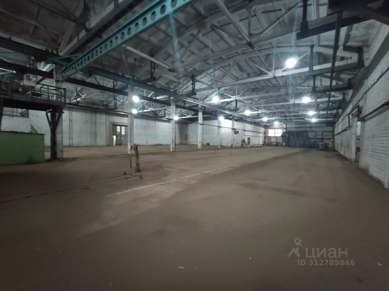 Площадь 8318,6 кв.м. Состоит из нескольких пролетов с высотой потолков 7,2 м. Большие ворота (под фуру). Имеются административно-бытовые помещения.