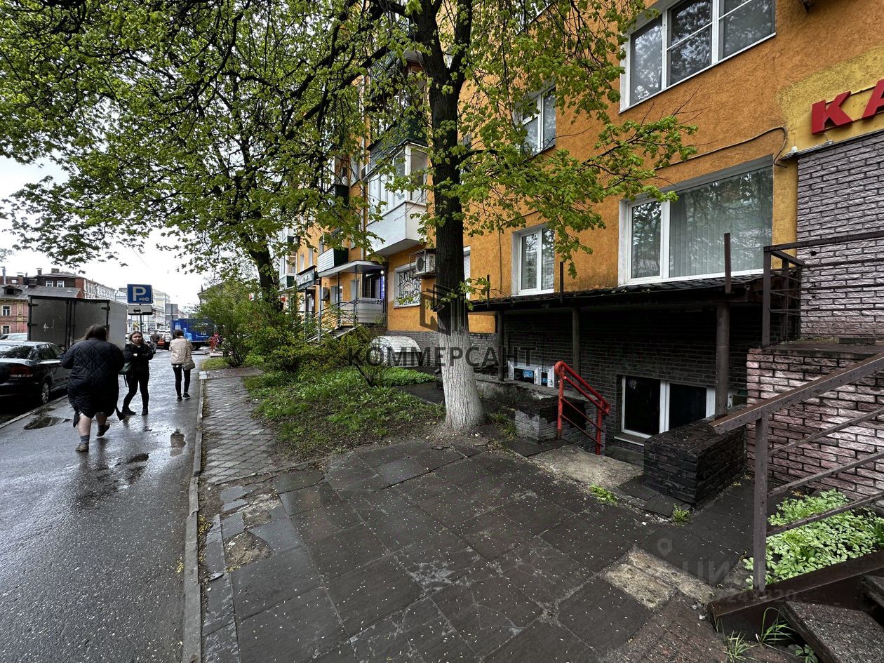 Цокольный этаж, вход с красной линии, удобная планировка для организации торговой деятельности (торговый зал, подсобные помещения, санузел), высокие потолки, все коммуникации, электричество 20 кВт.
