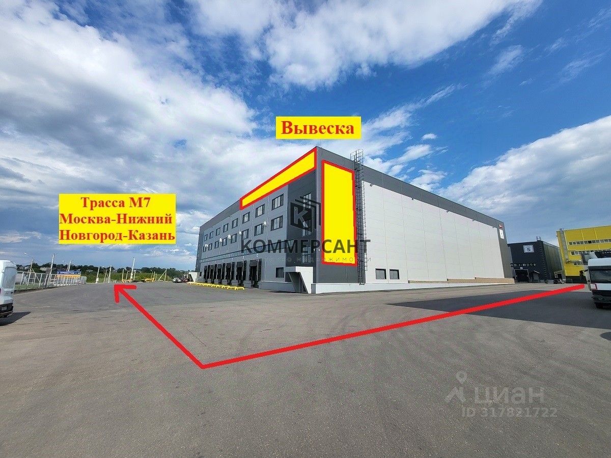 На фасаде здания с двух сторон есть места под вывески, хорошо читаемые с трассы.