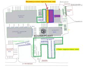 В стоимость аренды включены парковочные места для легковых и грузовых автомобилей, расположенные вокруг здания. На территории складского комплекса в 20 метрах от здания склада есть дополнительные места общего пользования паркингом до 200 легковых и до 25 грузовых машиномест, за которые не взимается дополнительная плата.