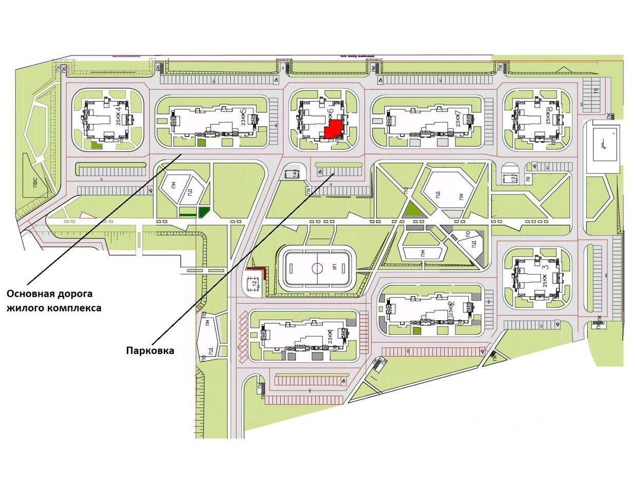 + Фасад помещения выходит на центральную дорогу и прогулочный бульвар жилого комплекса. Имеется возможность размещения широкой, объемной рекламной конструкции.