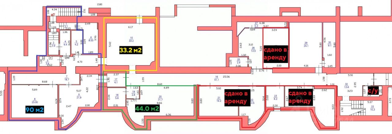 Остались кабинеты площадью: