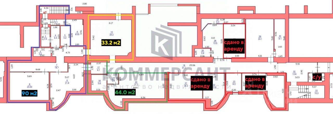 33.2 м2 (25 000 руб./мес.+ счет и тепло)