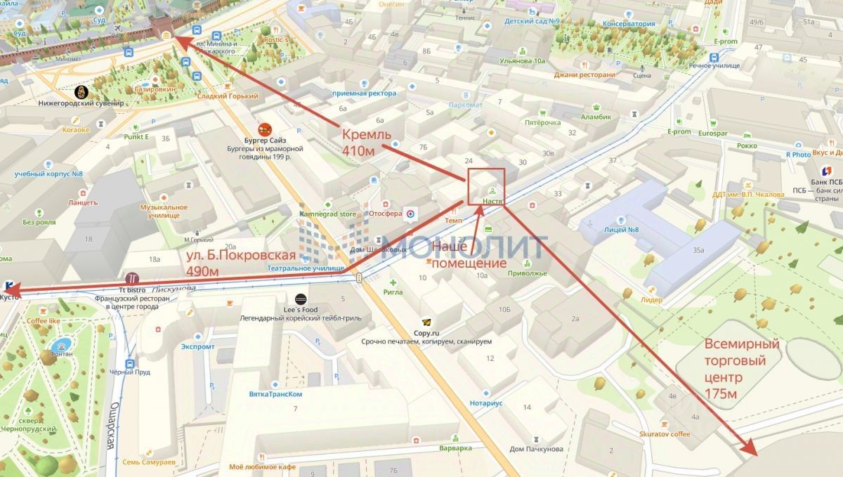 • Всего 410 м от Кремля (пл. Минина и Пожарского)