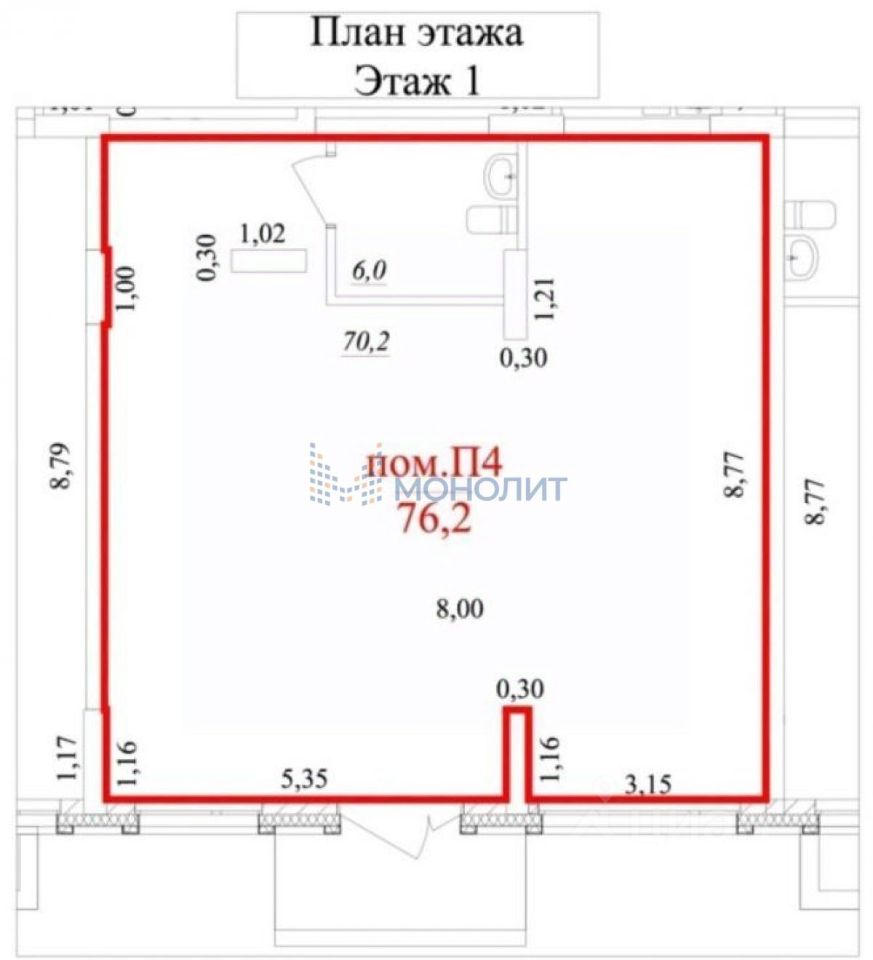 ПСН: 76,2 м² торгово-офисное помещение в новостройке