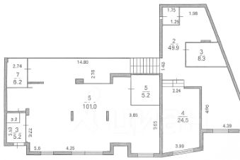 Общая площадь: по планировке — несколько зон различной площади (крупный зал + отдельные комнаты).