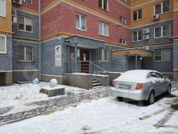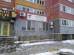 Вход в помещение со двора, окна выходят на улицу Комарова (трамвайные пути, магазин Магнит)
