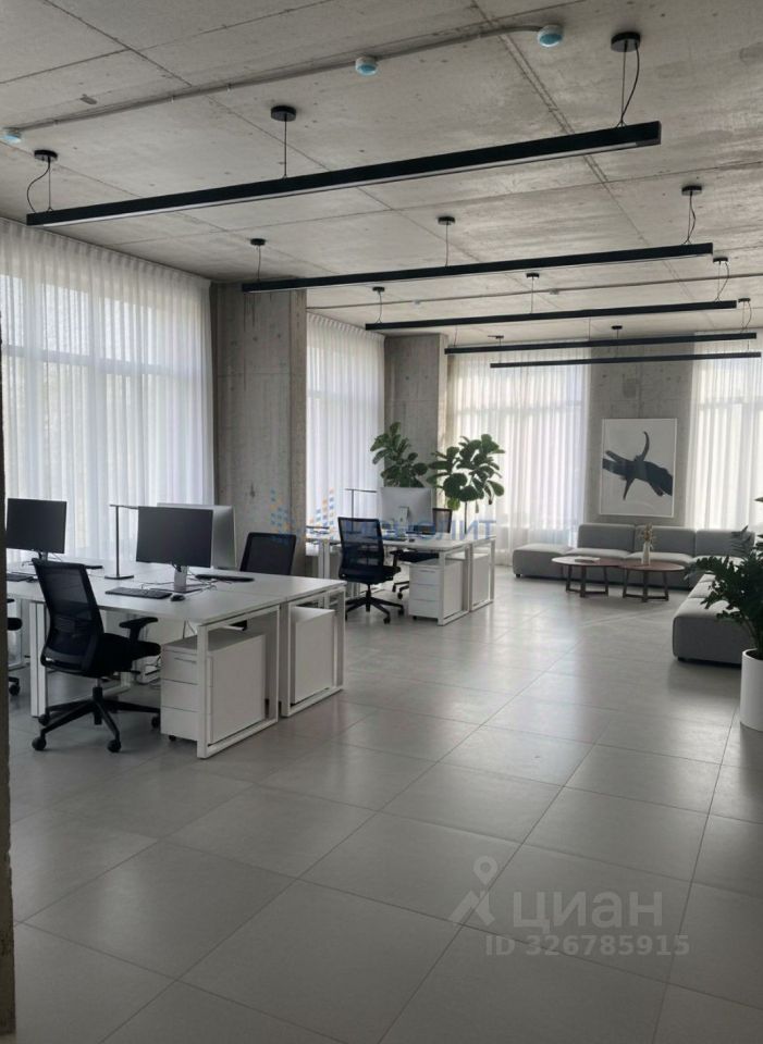 В помещении высокие потолки ,более 3 м. Роскошный вид на реку , панорамное остекление , при необходимости деления на кабинеты или зонирования , сохранит за каждым уголком площади достаточную естественную освещённость и простор.