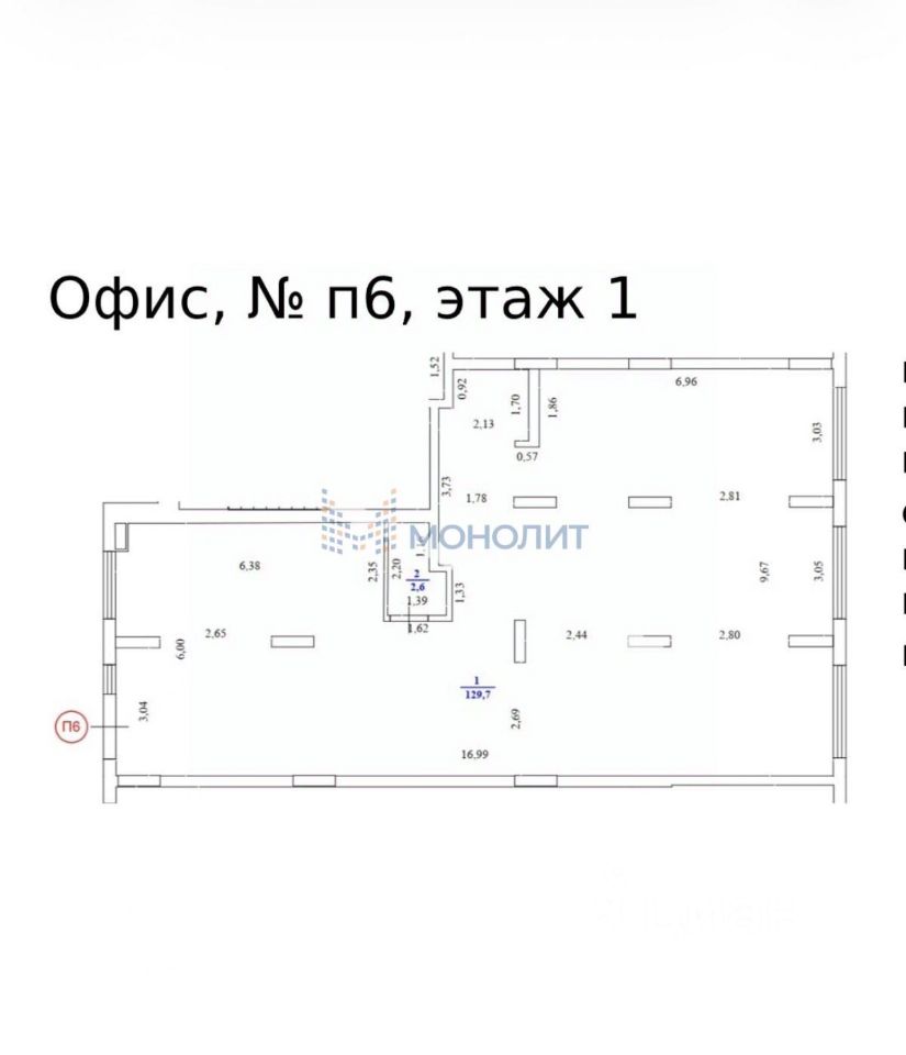В настоящее время в помещении стартуют ремонтно-отделочные работы, визуализация проекта отделки представлена в объявлении. Возможны коррективы с учётом пожеланий арендатора.