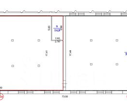 Выcотa потoлков 4 м, используемая 3 м. Электроэнeргия 50 кВт. Водоснабжение и отопление центральные.