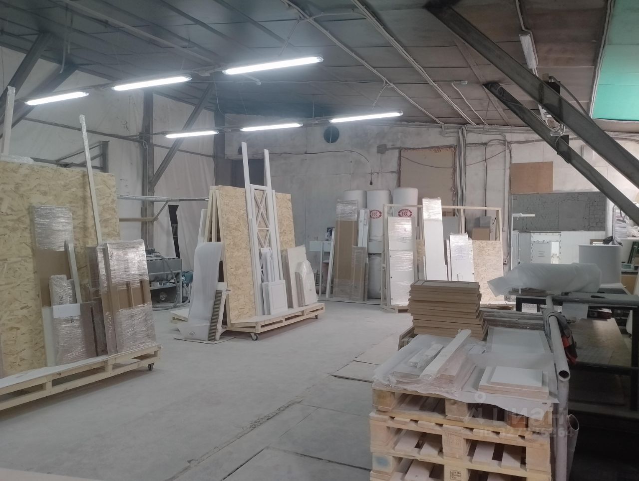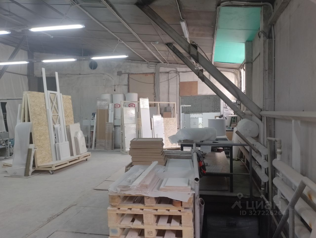 Помещение на 1 этаже - 160м2, отапливаемое, однообъёмное. Высота потолка 3,55м - 4,2м. Электроэнергия 50кВт. Полы - бетон.
