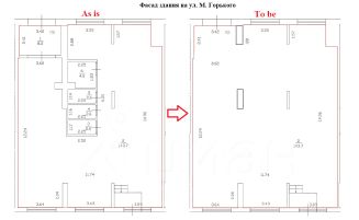 Торговое помещение 164,3 кв.м. на 1 этаже нового 12-этажного жилого дома, расположенного на первой линии ул. Максима Горького в 20 метрах от станции метро Горьковская.