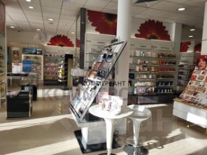 Витринные окна, много рекламного места, городская парковка перед помещением.