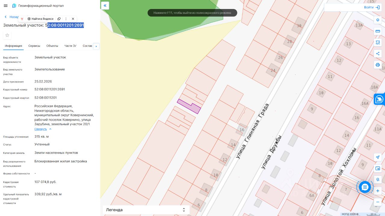 - разрешенное использование блокированная жилая застройка - категория земель земли населенных пунктов - площадь земельного участка 315 кв.м. - кадастровый номер 52:08:0011201:2691