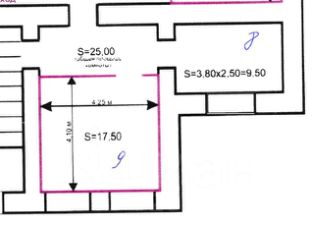 Планировка: два смежных кабинета (25 м² + 9,5 м²). Возможно использование как единого пространства или разделение на зоны.