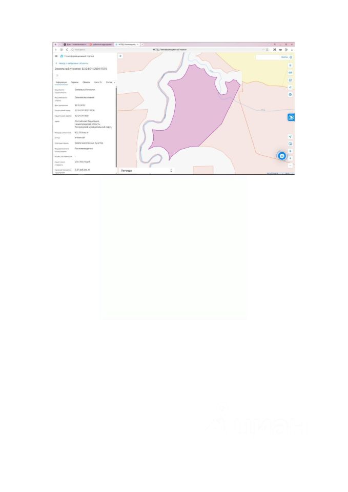 Право на заключение договора аренды сроком на 20 (двадцать) лет на земельные участки, государственная собственность на которые не разграничена, расположенные по адресу: Нижегородская область, Богородский муниципальный округ, село Каменки, кадастровый номер 52:24:0110001:7576, площадью 102753 кв.м.,вид разрешенного использования - Растениеводство, с ограничением в использовании ЗОУИТ 52:00-6.802 (Водоохранная зона реки Ункор на территории Богородского муниципального округа Нижегородской области).