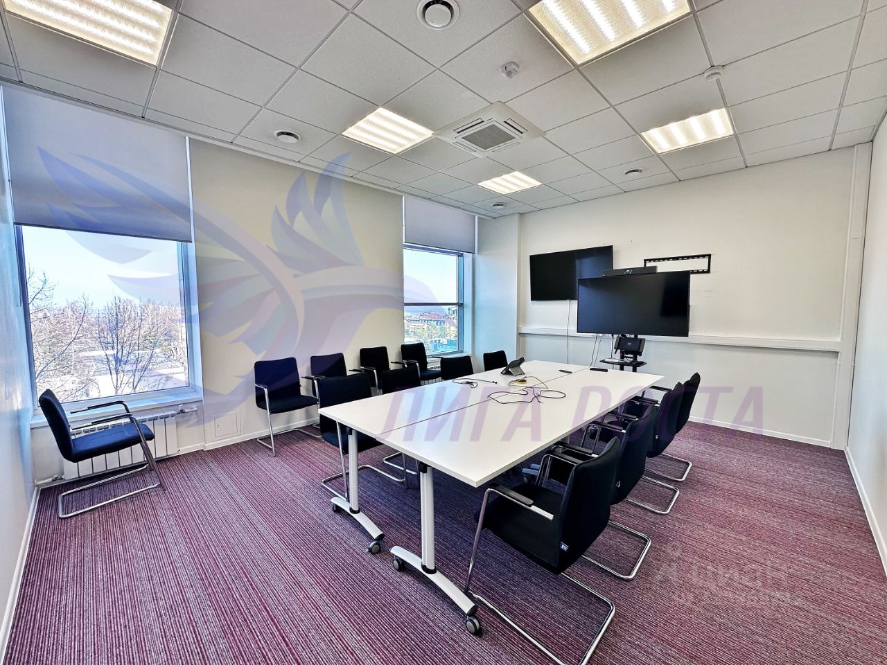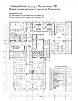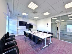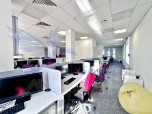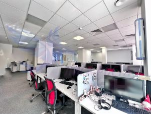 планировка: кабинеты (переговорные), а также зондированные разные по площади open-space, оборванная кухня, гардеробная, с/у, серверная, много небольших переговорных.