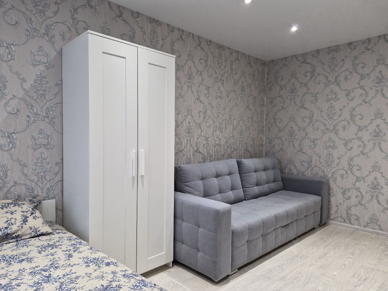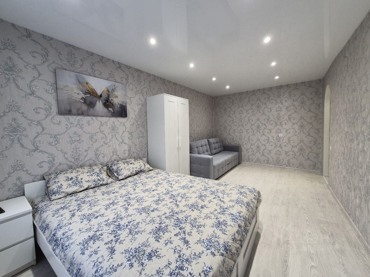 В квартире четыре спальных места: раскладной двуспальный диван и двух местная кровать.
