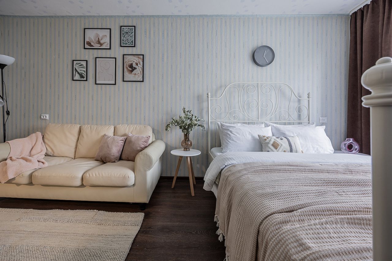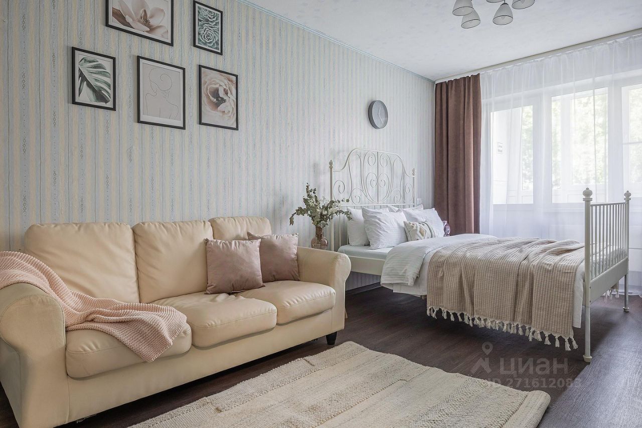 1 комната: двуспальная кровать 140*200, двуспальный диван, ТВ, застекленный утепленный балкон. Площадь 20 м2 ;