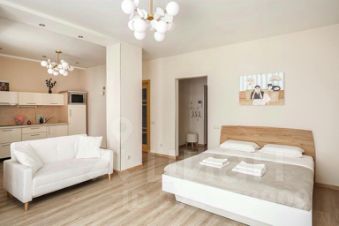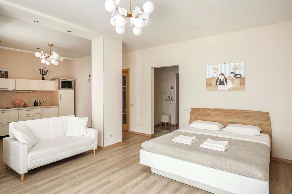 Апартаменты оснащены светлой кухней с выходом на лоджию, кухня оборудована для готовки. В апартаментах также есть бесплатный Wi-Fi.