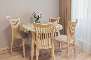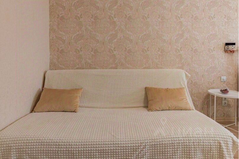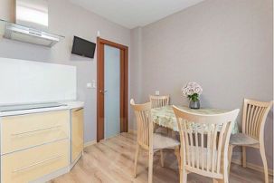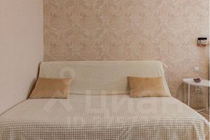 Квартира прекрасно подойдет для проживания до 4 гостей: в квартире помимо двуспальной кровати есть также раскладной диван, что позволит разместиться гостям на раздельных спальных местах.