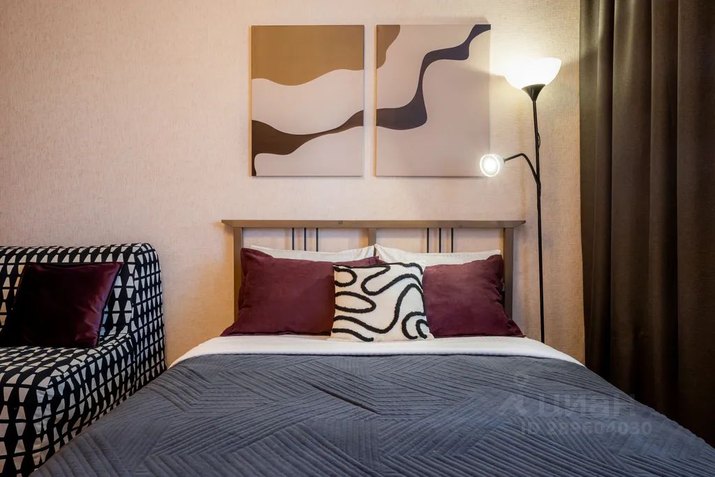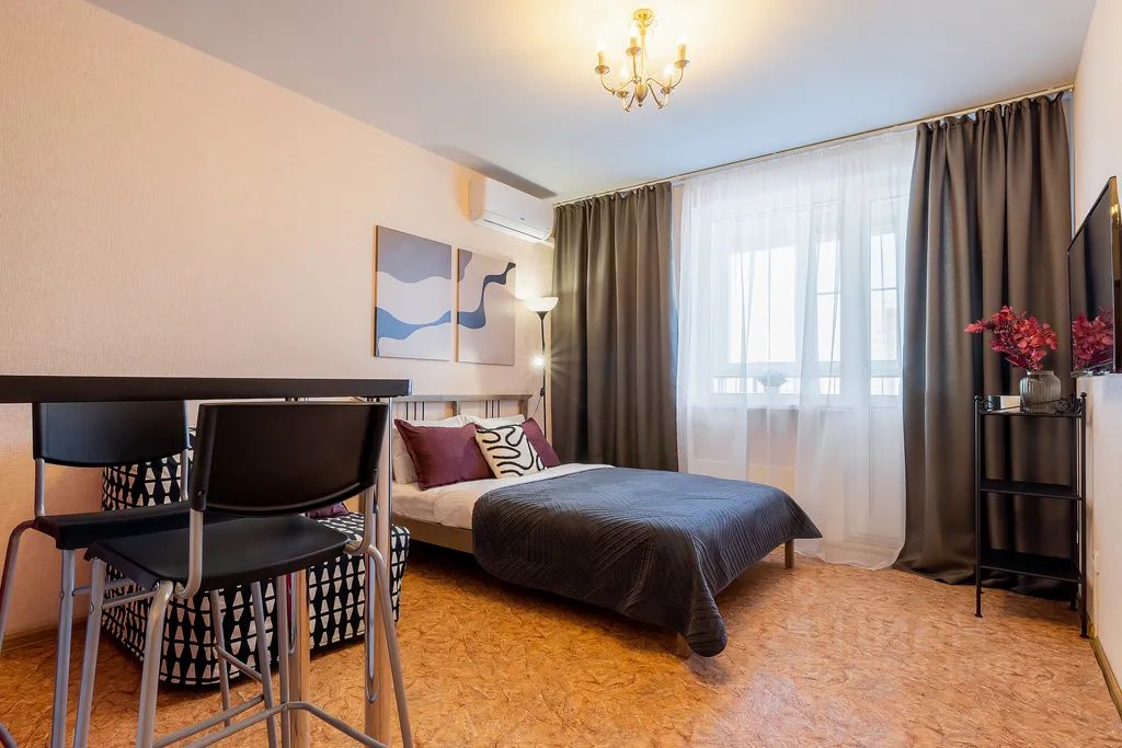 Студия, 9 этаж, лифт, двуспальная кровать + раскладное кресло, до 3 гостей.