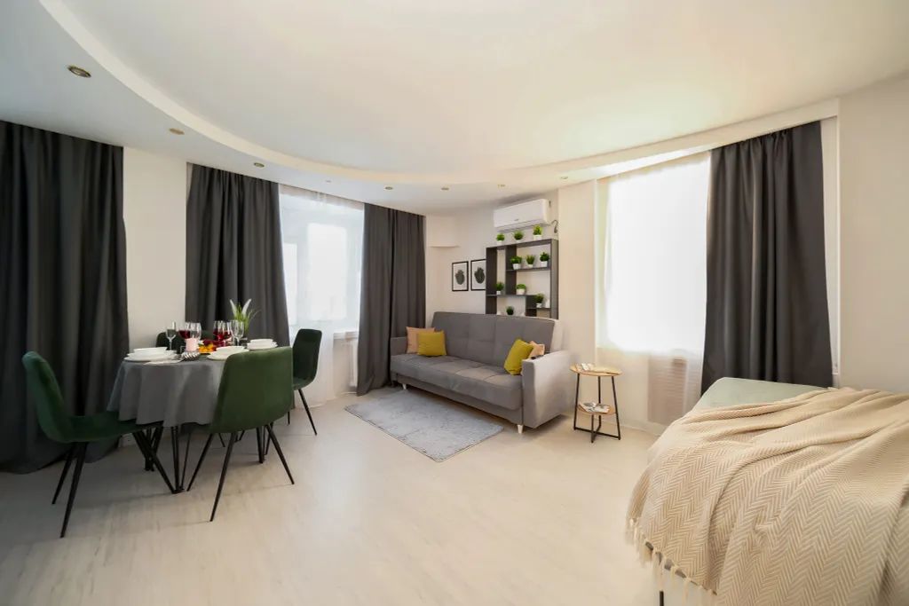 Светлая, уютная студия в новом доме. Абсолютная чистота, стильный интерьер и всё необходимое для комфортного отдыха. Вместимость до 4 гостей (1 двуспальная кровать + раскладной диван). Бесконтактное круглосуточное заселение по паспорту и договору