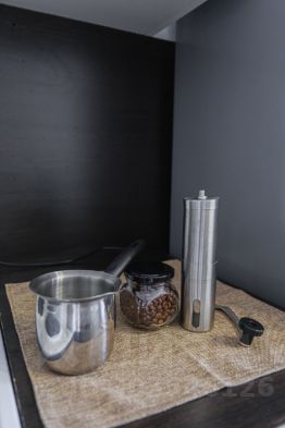 Кофе, чай, посуда, утюг, стиральная машина, сушилка, гладильная доска.