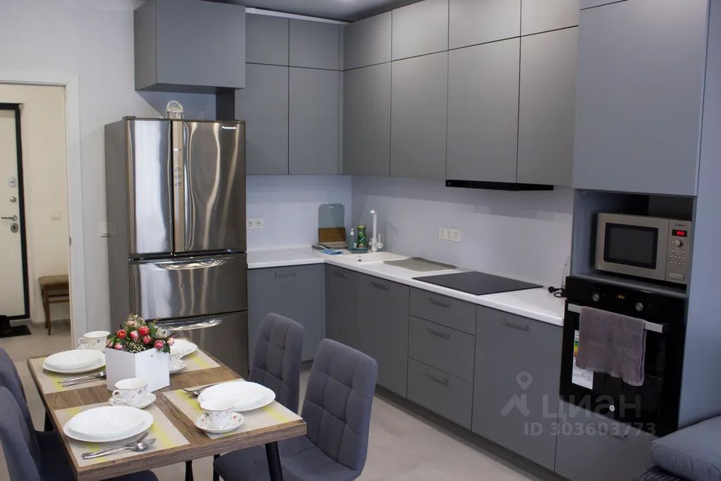 Кухня оборудована всем необходимым для приготовления вкусных блюд. В квартире имеется: холодильник, стиральная машина, электрический чайник, СВЧ, фен, утюг, гладильная доска, необходимая посуда.