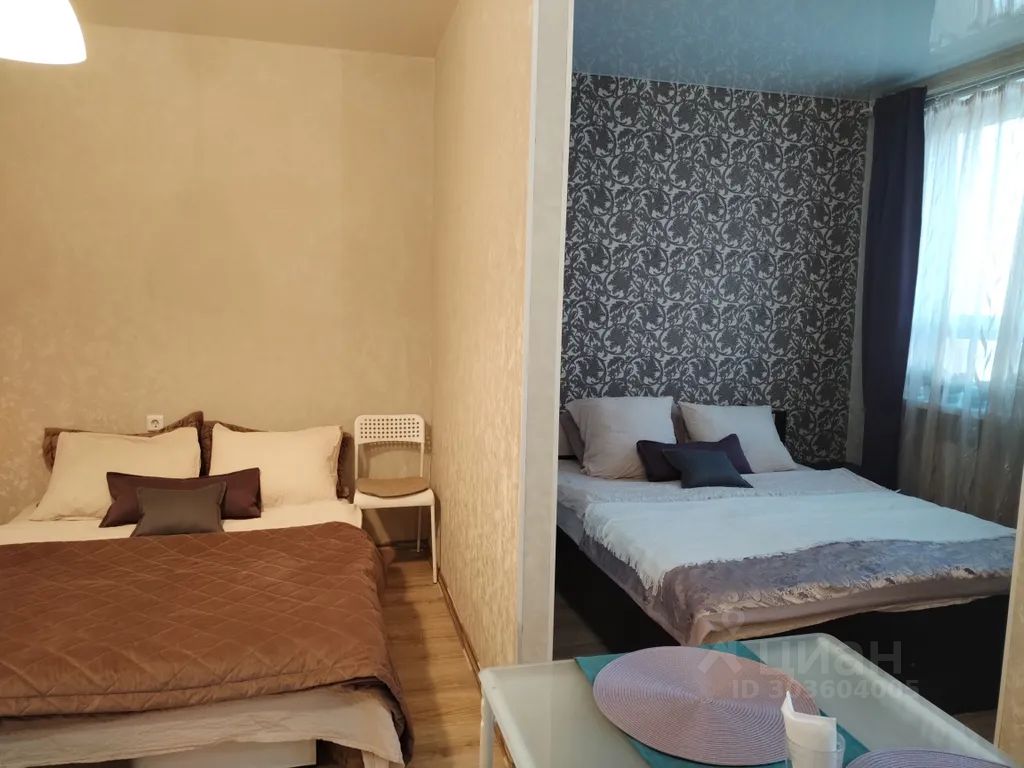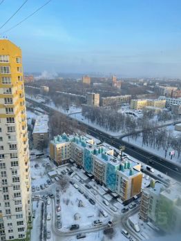 Квартира-студия расположена в новом доме на 24 этаже (в комнате с перегородкой) в ЖК "Гагаринские высоты" и сдается на короткие сроки. Вид на реку Оку, город и двор.
