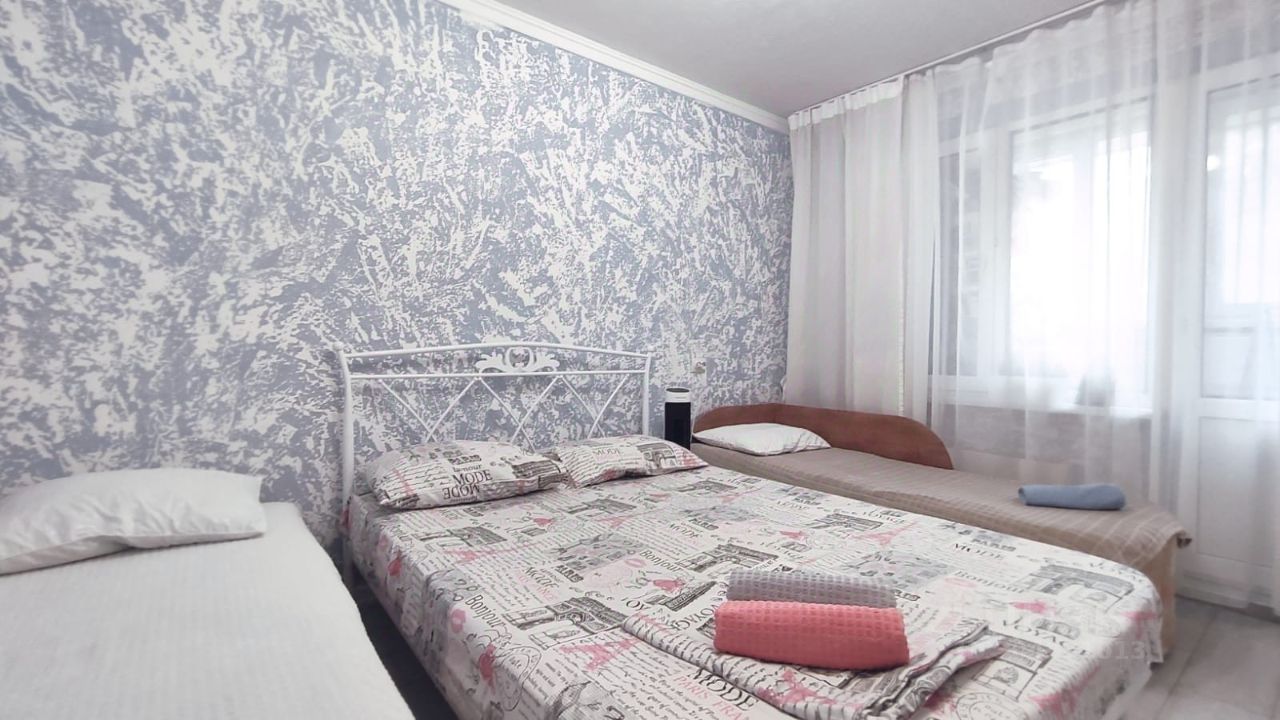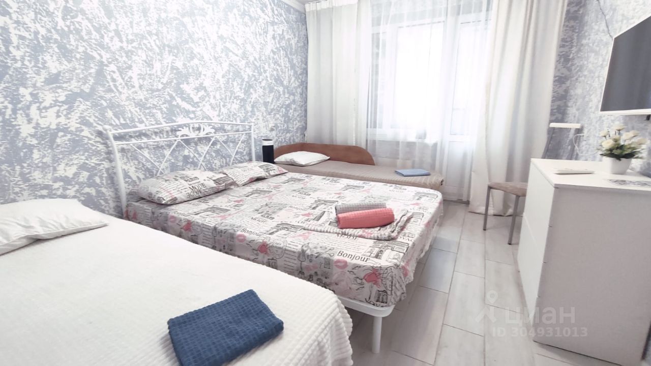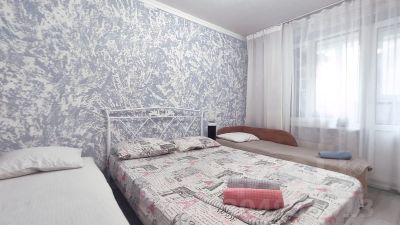 Предлагаем разместиться в хорошей однокомнатной квартире в очень удобном месте. В квартире есть все для комфортного проживания: двуспальная кровать, кресло-кровать, раскладывающее в полноценную односпальную кровать 90х200 и раскладная тахта 70х190.