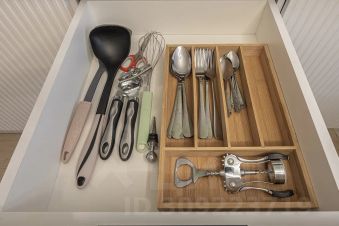 — полностью оборудованная кухня (холодильник, плита, СВЧ-печь, чайник, набор посуды)