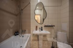— Просторная ванная комната с удобной ванной, комплектом мягких полотенец и феном