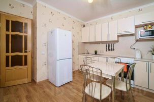 В квартире есть все для комфортного размещения: В комнате стоит большая двуспальная кровать и раскладной диван. Установлена плазма с подключенным ТВ. Имеется шкаф для одежды. В ванной подключена стиральная машинка.