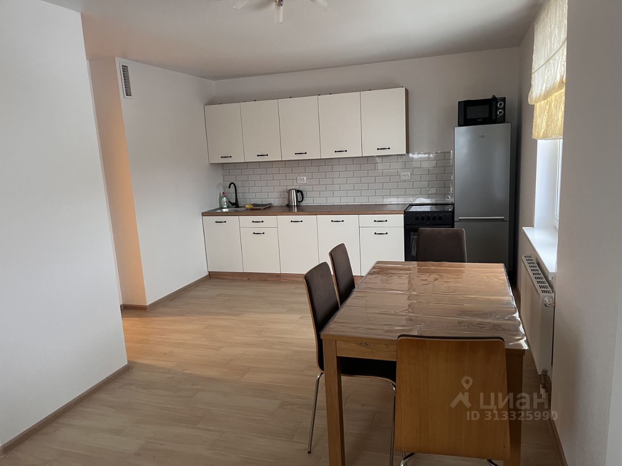 Квартира светлая, комнaты изолиpованныe , большая кухня-гостиная с выходом на лоджию, с кухонным гарнитуром и обеденной группой.Установлен холодильник, электрическая плита, микроволновка, электрический чайник.