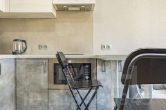 —Полностью оборудованная кухня (холодильник, индукционная плита, СВЧ-печь, чайник, фильтр-кувшин для воды, набор посуды);