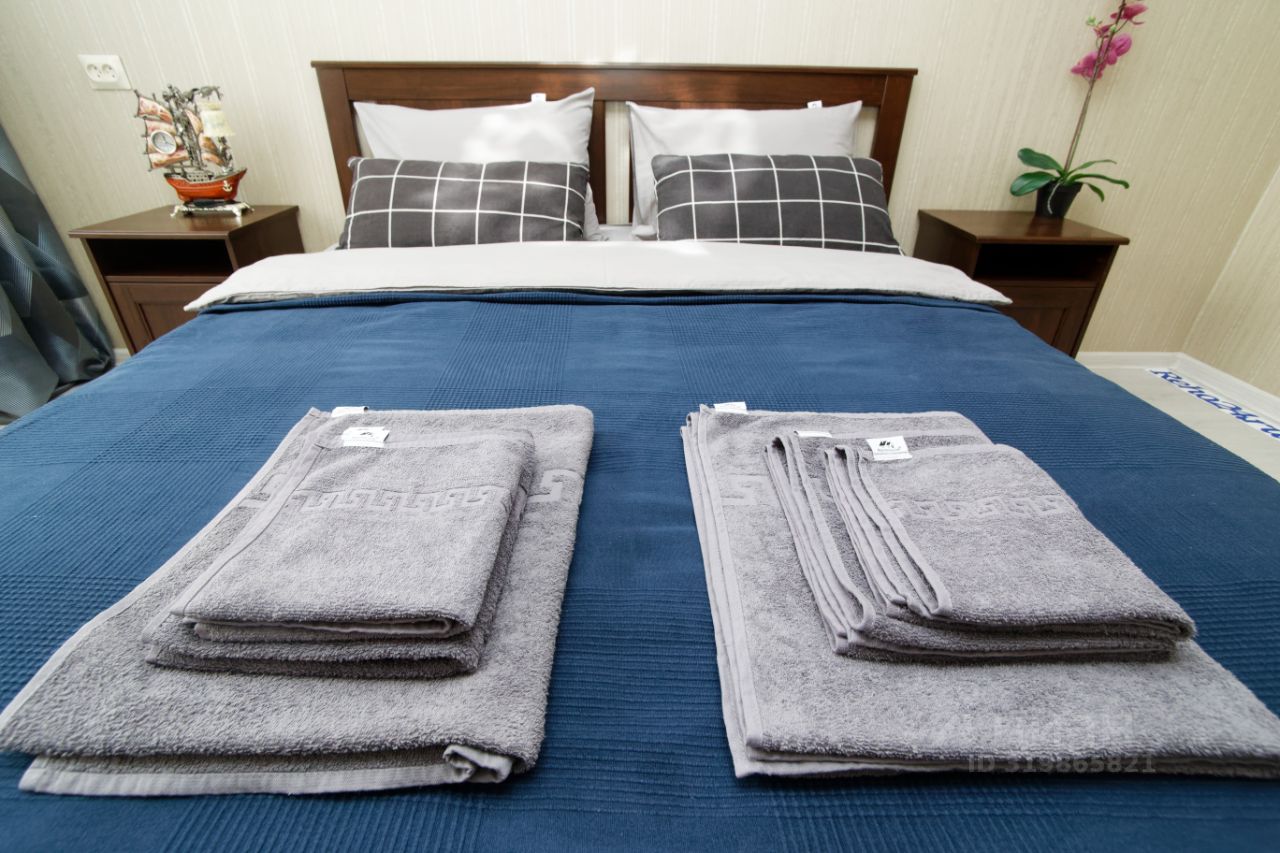 - Кровать уже заправлена чистым и выглаженным постельным бельём.