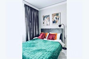 - Квартира расположена в тихом, зелёном месте, на берегу озера. Рядом есть лес, где можно погулять, и пляж, где можно позагорать.