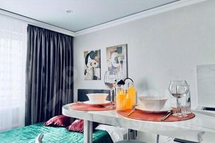 Стильная комфортабельная студия для вашего отдыха с новым дизайнерским ремонтом в современном жк бурнаковский.