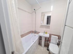 Апартаменты для 3 гостей. Спальные места: двуспальная кровать и односпальная кровать. К услугам гостей постельное белье страйп сатин, одноразовые средства личной гигиены,полотенца для каждого гостя, бесплатный wI-fi. Кухня оборудована необходимой техникой и мебелью. Комфортная ванная комната.