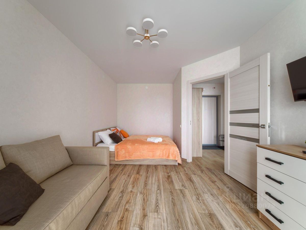 Площадь 35 м2, 7-й этаж 18-ти этажного дома с лифтом. Вас ждёт комната с двуспальной кроватью и диваном, который раскладывается и при необходимости может служить дополнительным спальным местом для одного взрослого или двух детей. Также есть кухня.